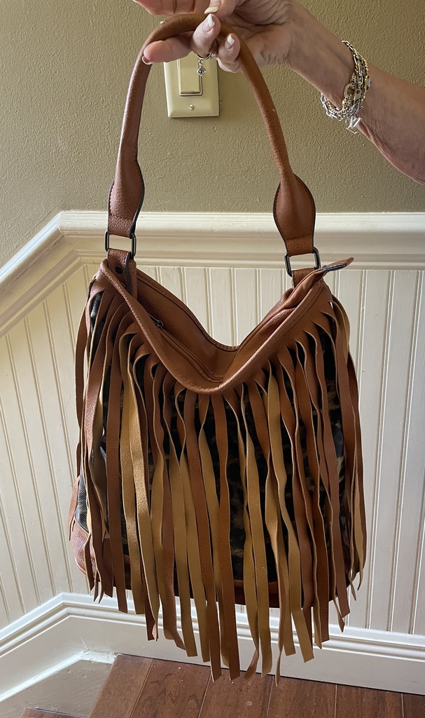 Stylish leopard fringe brown and black hobo bag