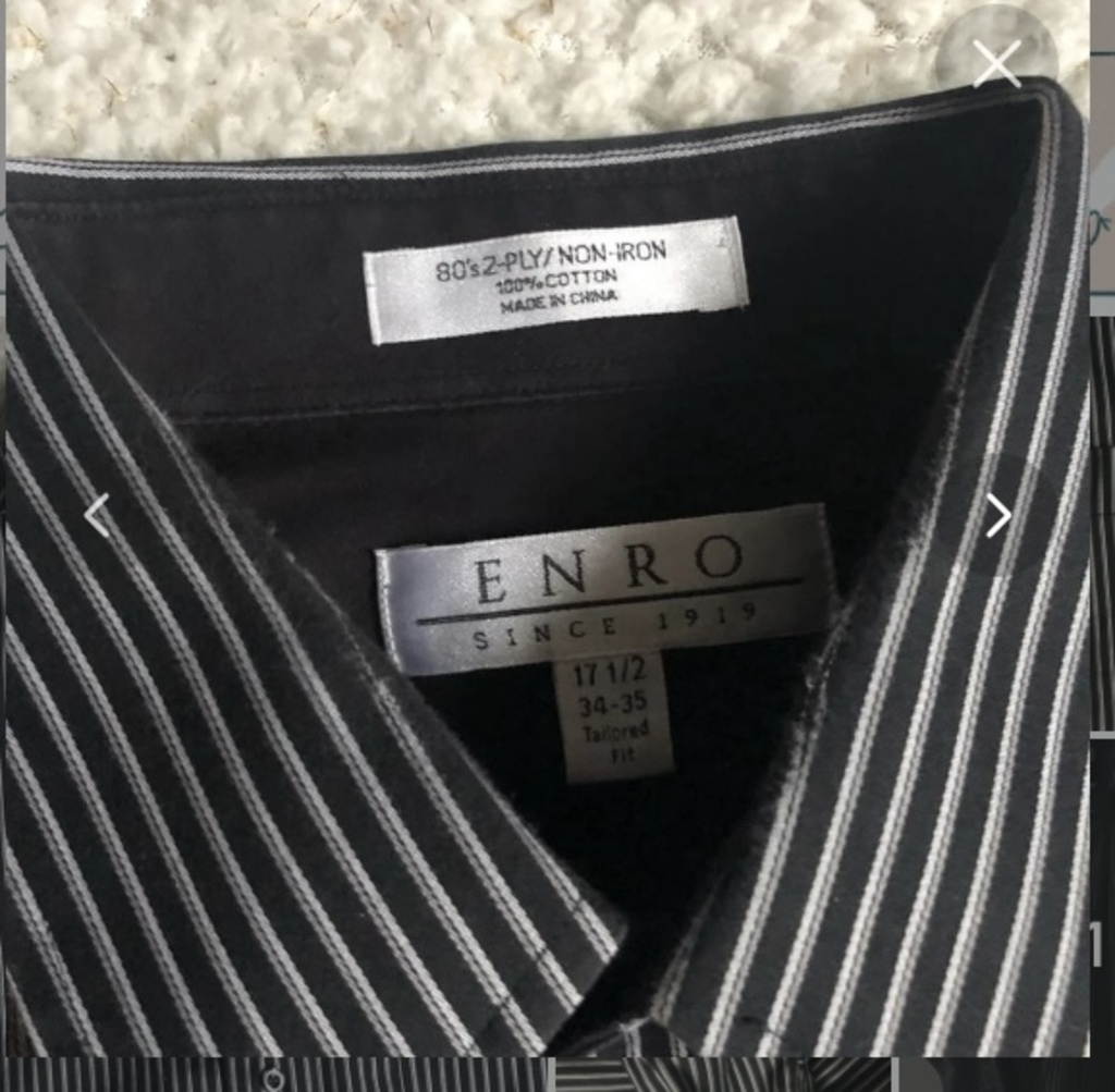 Enro 2 ply 100% cotton Black and white pinstripe button down shirt XXL. Men’s XXL Enzo two ply 100% cotton button down shirt with velvety inside liner buttons all the way up to the top collar and three buttons on the cuffs to adjust for comfort. This Enzo button down will work both for casual and for work or more formal events.
