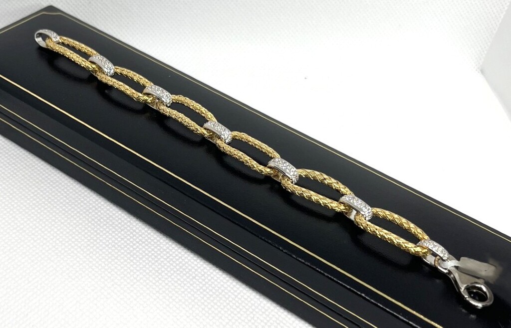 Italian Made Bracelet, 18Kt Gold Plated Sterling Silver CZ"s