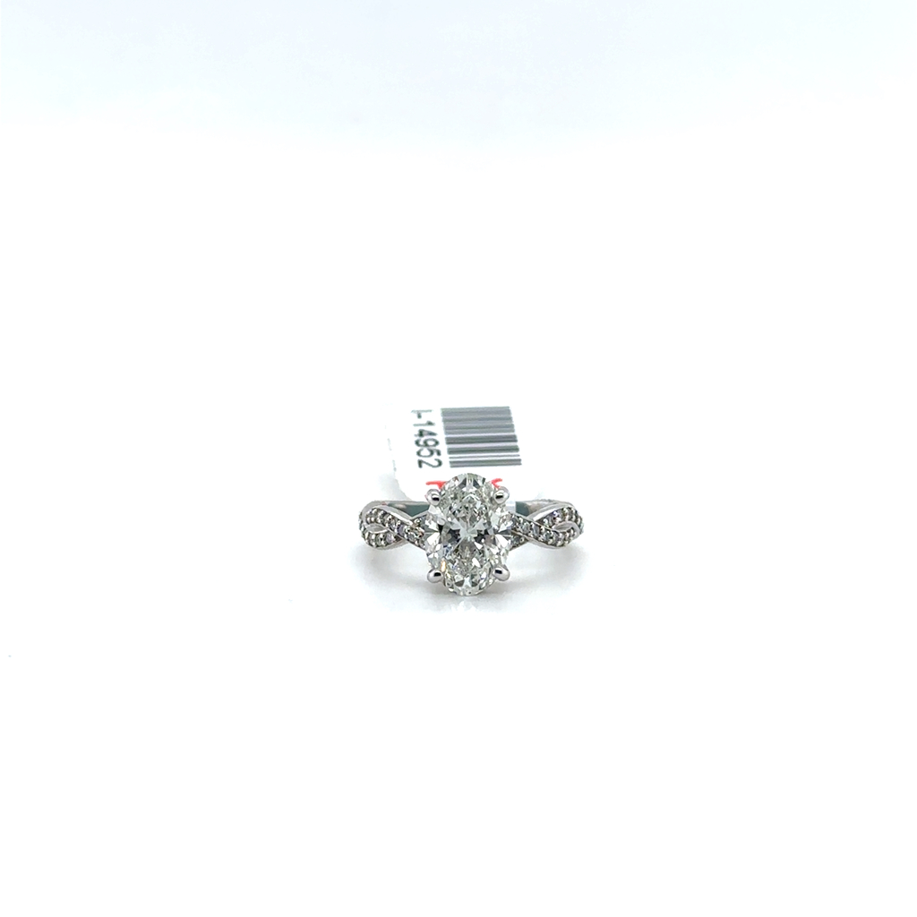 2 ct oval LAB VS1, F set w braided diamond shank .16ctw lab dias IGI certified 14k wg Size 4.5 I-14952