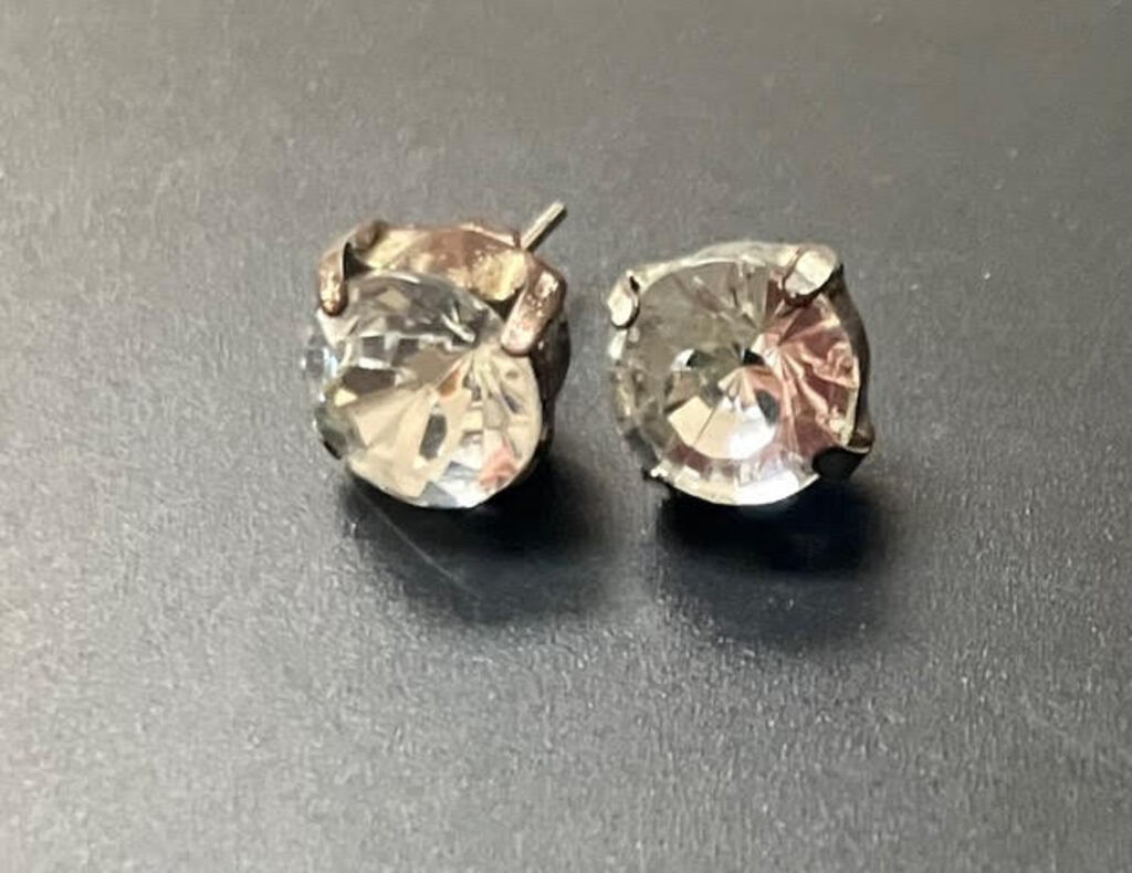 New Large Crystal Pierced Earrings. Great looking! Works for all occasions. Silver tone settings. Measures 1/2” in Diameter.