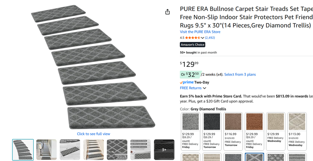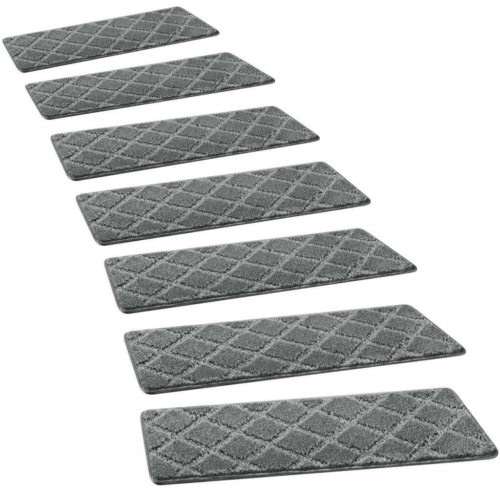 New, PURE ERA Carpet Stair Treads Tape Free Non Slip Indoor Stair Carpet Stair Protectors Pet-Friendly Non-Slip Skid Resistant Washable Reusable 8" x 30"(14 Pieces,Gray Diamond Trellis).