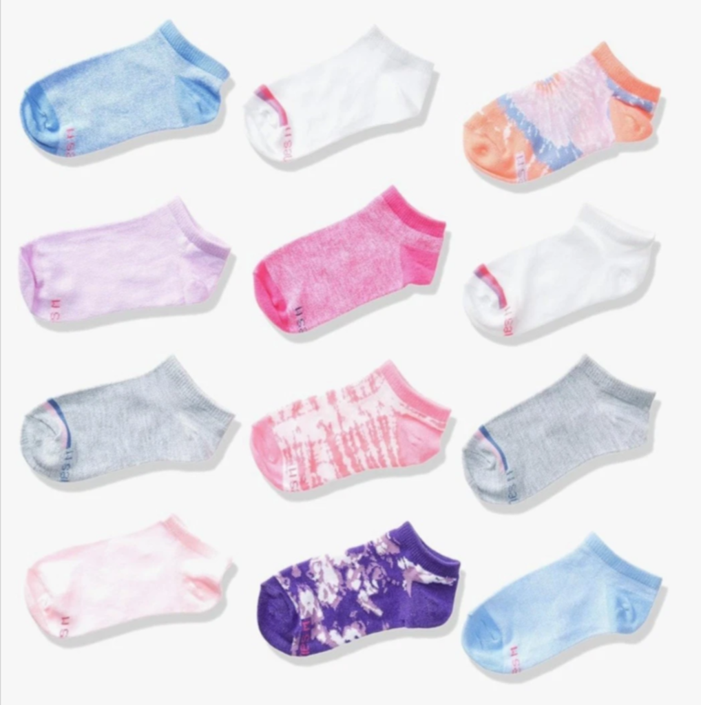 Hanes Girls' Ankle No Show, 12-Pair Pack Fashion Socks 10.5-