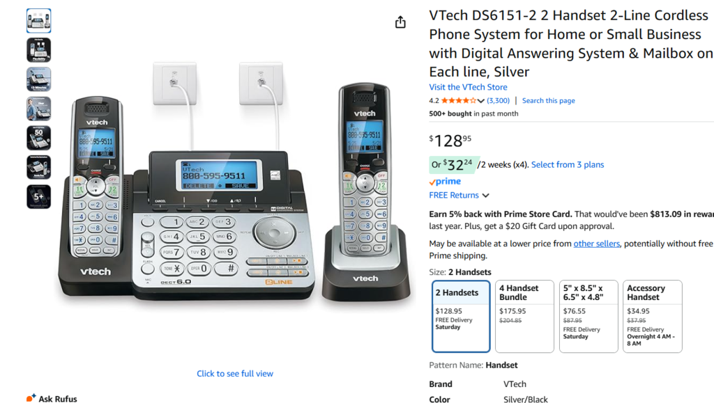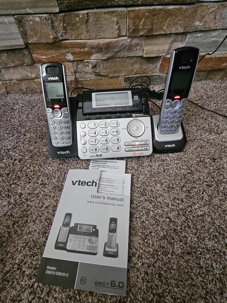 VTech DS6151-2 2 Handset 2-Line Cordless Phone System for Home or Small Business with Digital Answering System & Mailbox on Each line, Silver.