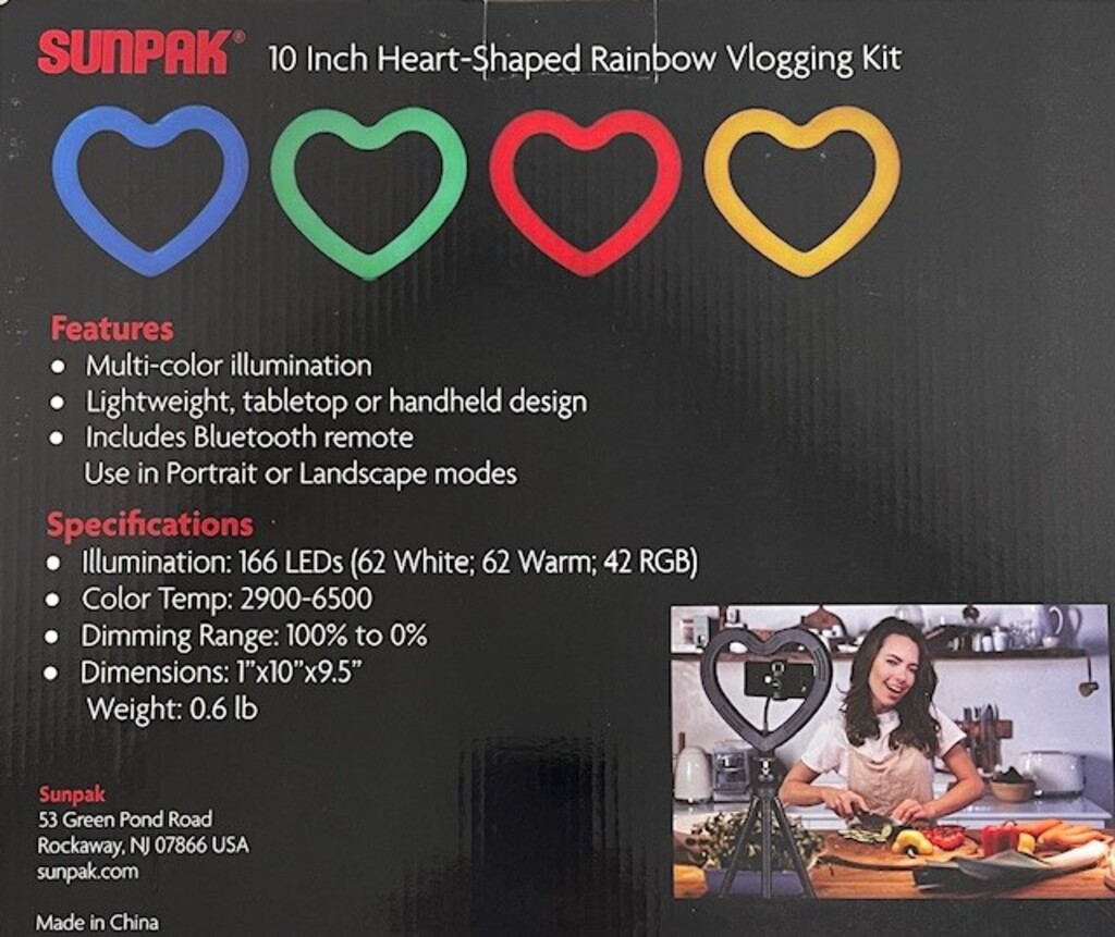 Features For Video Production and Vlogging CCT Color: 3200 to 5600K, RGB Mode USB Power Dimensions: 10" Outer | 7.5" Inner Quiet Passive Cooling Unique Shape..