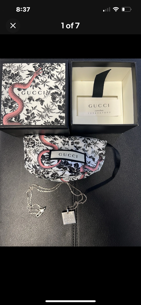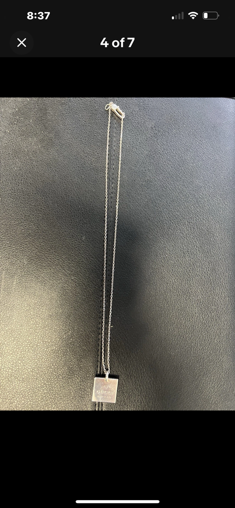 Square Plate Tag Gucci Necklace Pendant Silver 925 with Box