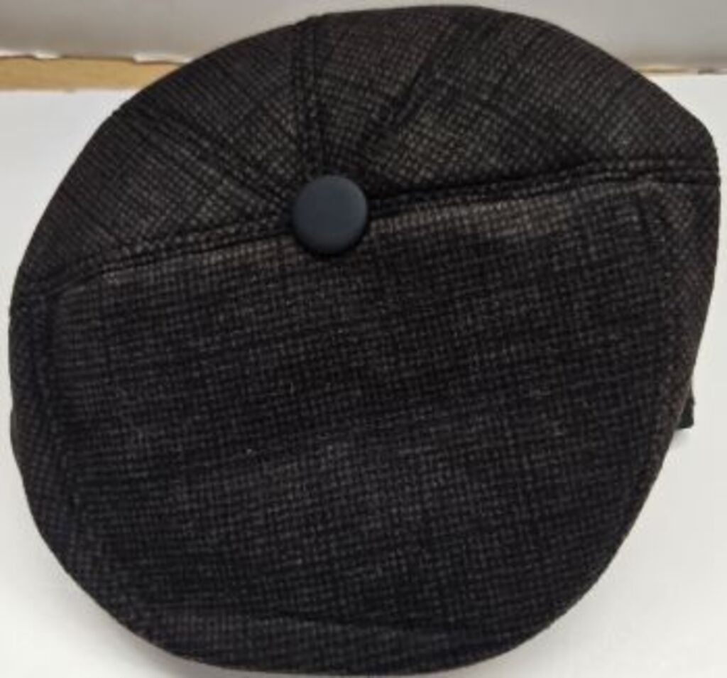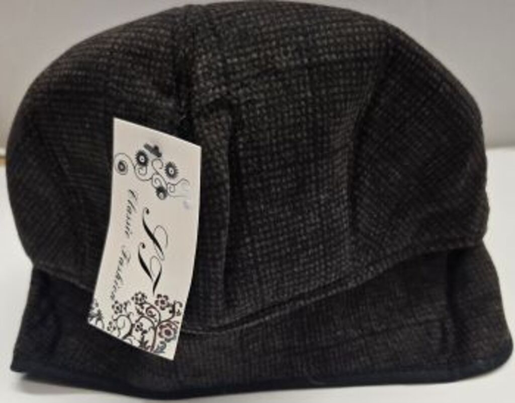 70% Cotton 30% Acrylic. This cap has ear flap and is comfortable, cozy, fashionable and well-made. Idea for cold weather and for dress wear. Made in China. Original J & Jin cap. FITTING GUIDE: One size.