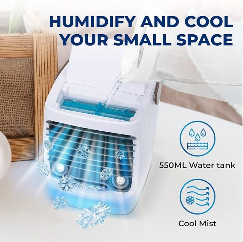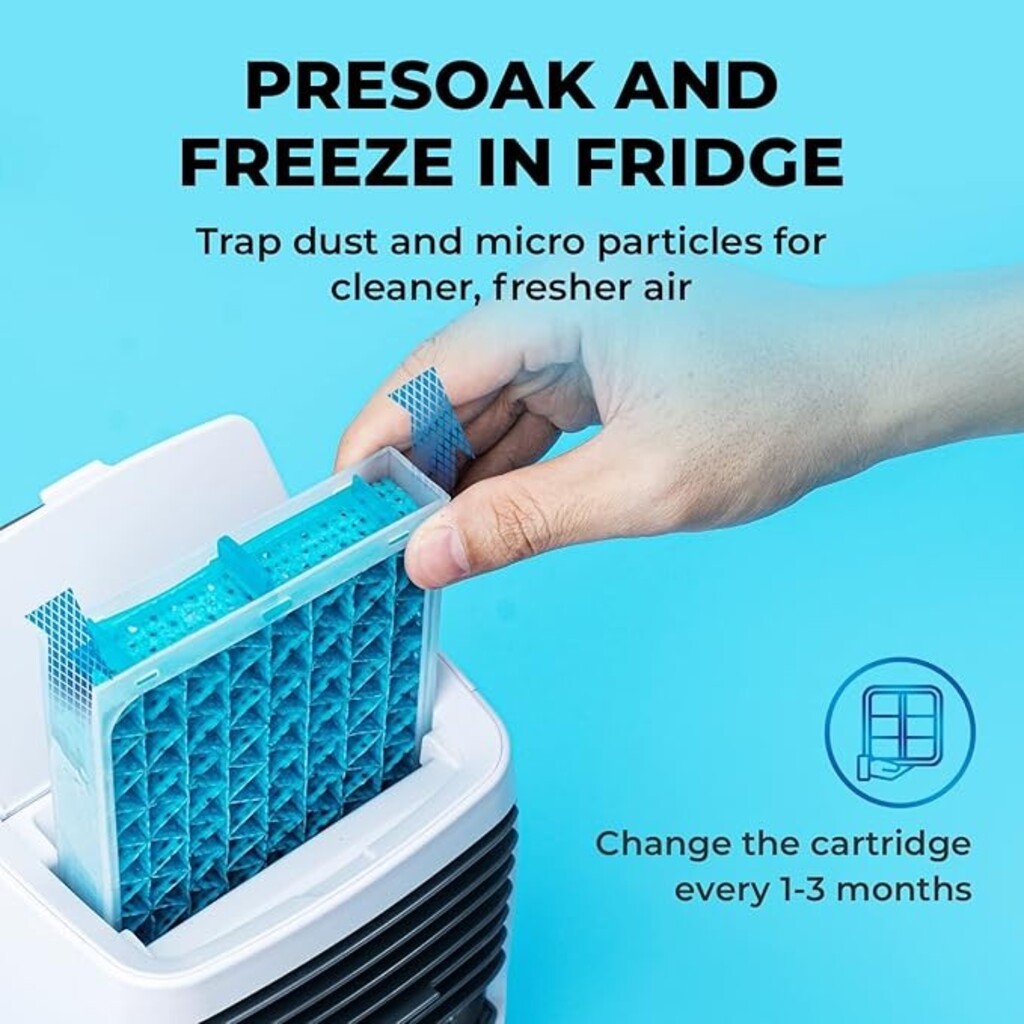 • Refillable Reservoir for Cold Room Cooling: The ice cooler’s 550ml water container lets you store more water, which cools down the cooling cartridge and allows water to evaporate for a long lasting, rapid air chill.