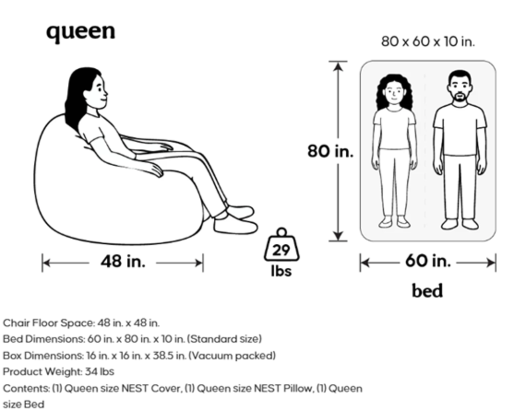 • CHAIR BY DAY, BED BY NIGHT: Effortlessly converts from a stylish, comfortable bean bag chair into a standard Queen-sized bed, providing a perfect sleeping solution for guests.