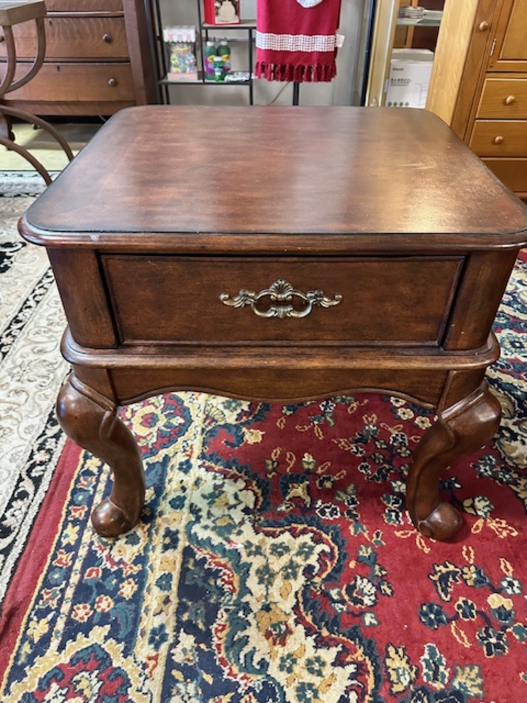 This is a solid end table for anyone who needs that extra little bit of storage. This table includes a working drawer.