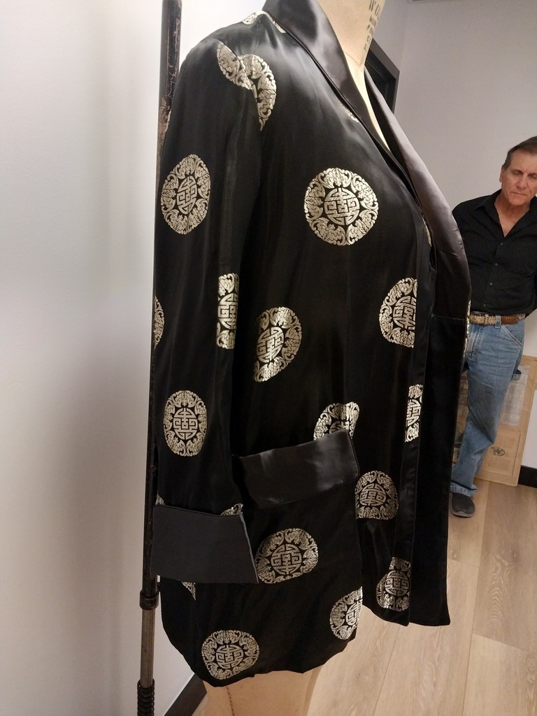 Black with design unisex lounging silk jacket made in Hangzhou china size m