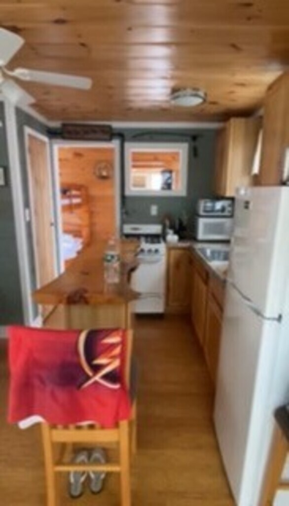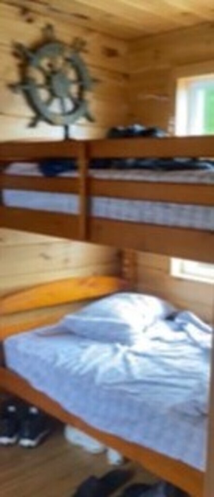 FOR SALE! 40’ CUSTOM BUILT Houseboat For sale (currently dry-docked in Gilford NH) This adorable, sunny, 2 bedroom 1 bath home on the water is genius in that it has no motor (so no registration needed) and requires no taxes! Just tie it off to the dock and live there all summer if you’d like! Step off the dock and onto your first deck. Open the sliding glass doors to an open kitchen/living room with full utility closet equipped with electric water heater. Continue into the first bedroom which includes bunk beds on the left and a futon on the right. Just beyond the first bedroom, you’ll find your bathroom area with vanity, medicine cabinet and separate quarters for toilet and shower with linen shelves. Finally, you reach the second bedroom which currently has a full size bed. This bedroom opens up to the second deck where you can enjoy a quiet morning just looking at the lake. Sleeps 6 to 8 people. When you’re done exploring inside, you can head past the propane grill and up the spiral staircase to your top deck and onto an open roof deck (holds 20 people comfortably). This home is powered by 200 amp power cable and All furnishings are included. Kitchen appliances include fridge, stove and microwave. Annual insurance premium with State Farm is only $700!!!