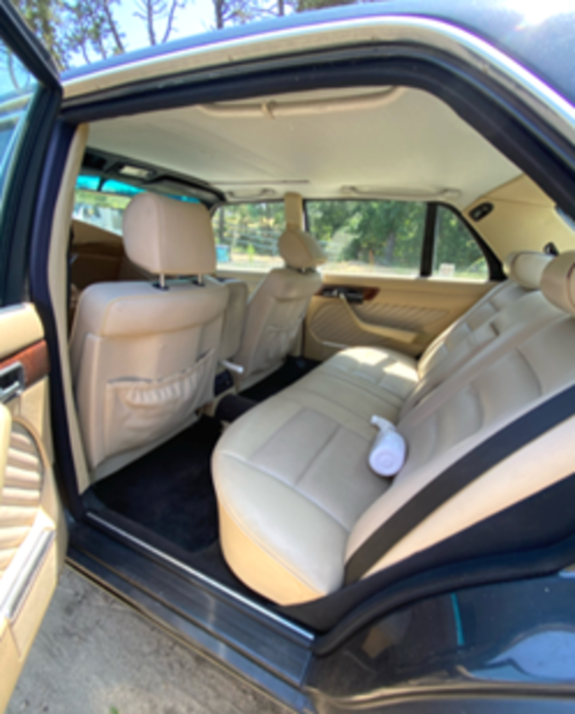 • Interior: Classic Mercedes interior with wood trim, leather seats, and power-adjustable, heated seats (front and rear).