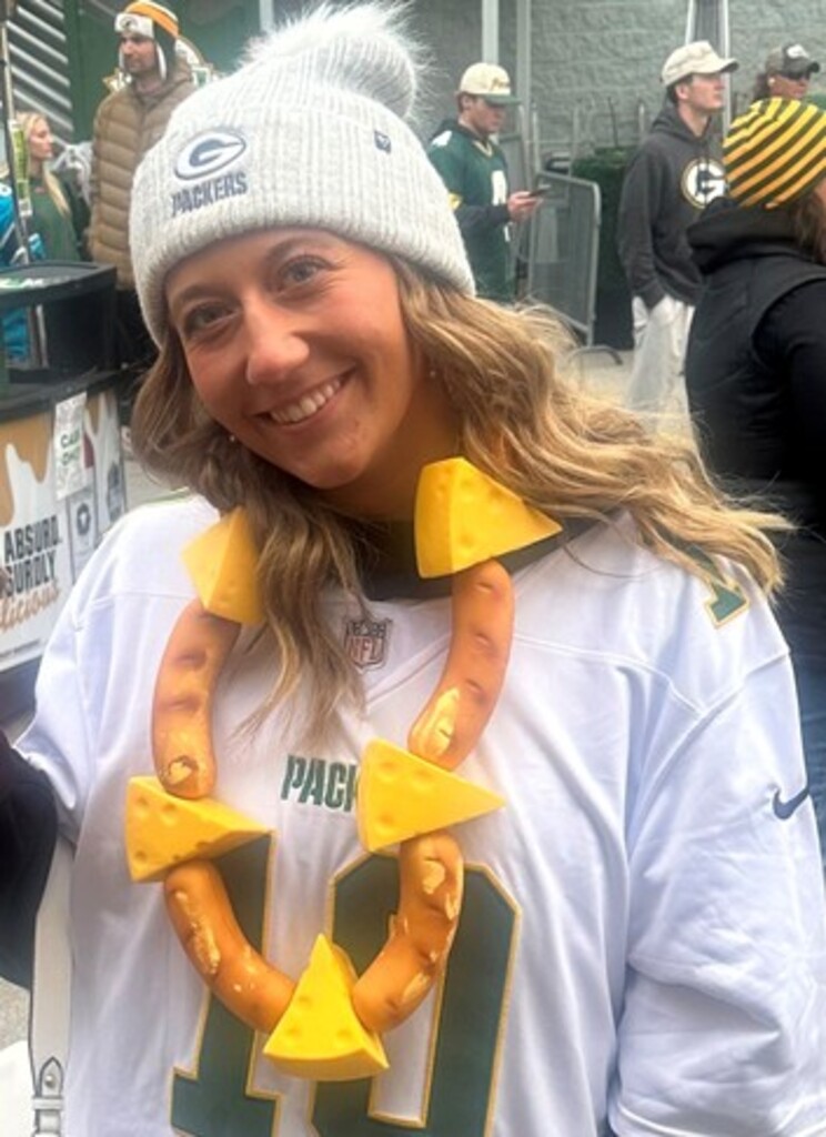 As seen on Video Reels from Charlie Berens the famous Brat and Cheese custom Packer necklace. 2 pack set. All inclusive pricing.