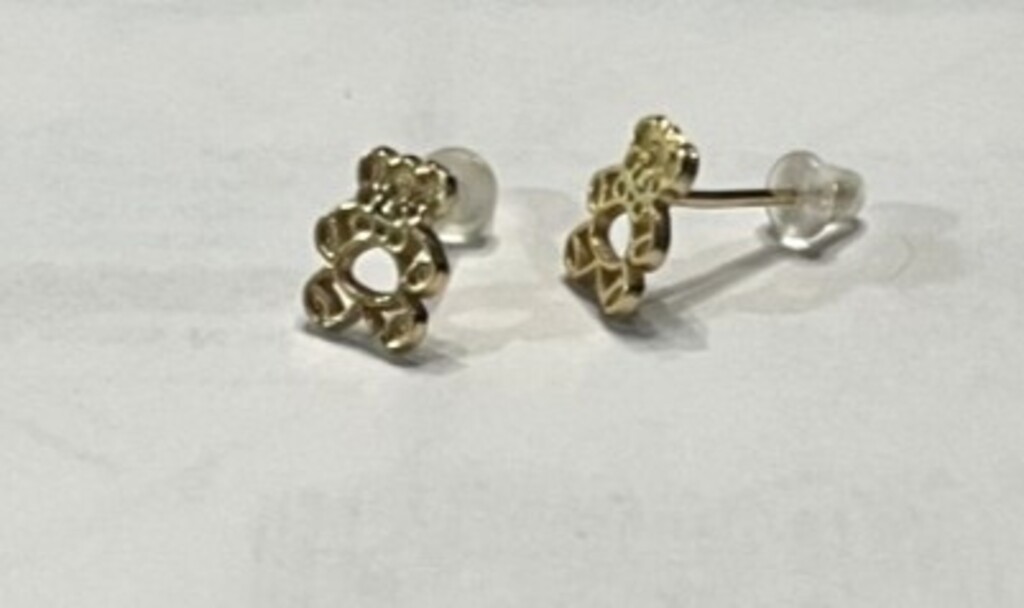 Baby Earrings Teddy Bear Studs 14Kt Solid Gold Yellow