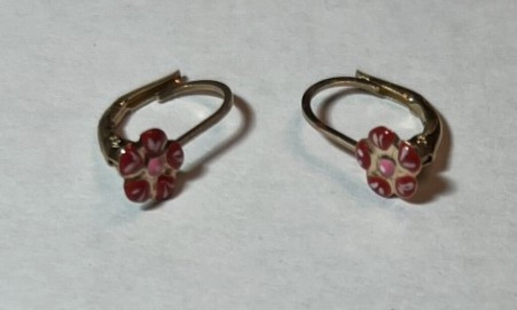 Earrings For Infants and Children 14Kt Gold Flower Hoop