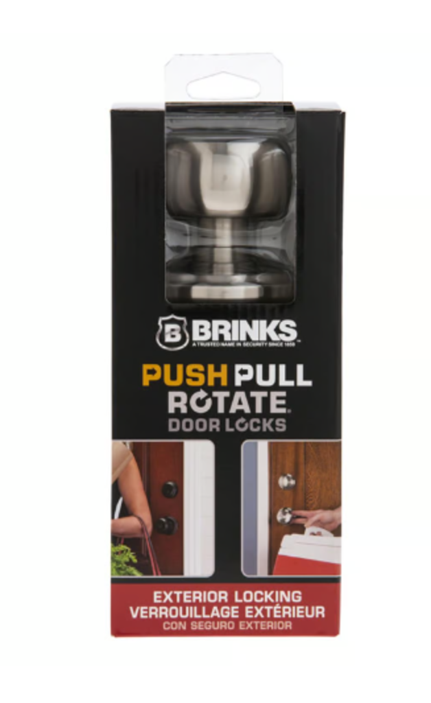 Push Pull Rotate the hands-full door lock from Brinks. The only door lock that opens 3 ways. Push it, pull it, or rotate it. With an elbow, hip or finger you can open the door by simply pushing or pulling on the knob or lever. Despite being so easy to use, these locks are built to achieve the most rigorous residential security standards as you would expect from Brinks. You can rest assured they will keep intruders out and your family and valuables safe. Push Pull Rotate door locks are built on a commercial grade chassis to with stand repeated use and abuse making them perfect for front and back doors and for all interior rooms like bathrooms, laundry rooms, and pantries. Installation is easy and they fit all standard doors. You only need a Phillips screwdriver and a few minutes to dramatically improve the function and appearance of your home. Made with superior craftsmanship, Push Pull Rotate door locks have dual torsion springs for smooth rotation, hidden screws for a more decorative appearance, 75mm diameter roses to hide the blemish from old hardware and removable interior knobs or levers for scratch-free installation. They also come with a lifetime warranty for defects in material or workmanship.
