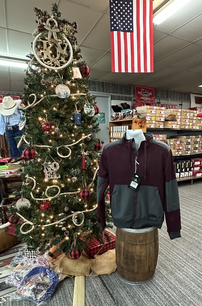 Hooey full zip front jacket in Burgundy/Grey with ribbed bottom.