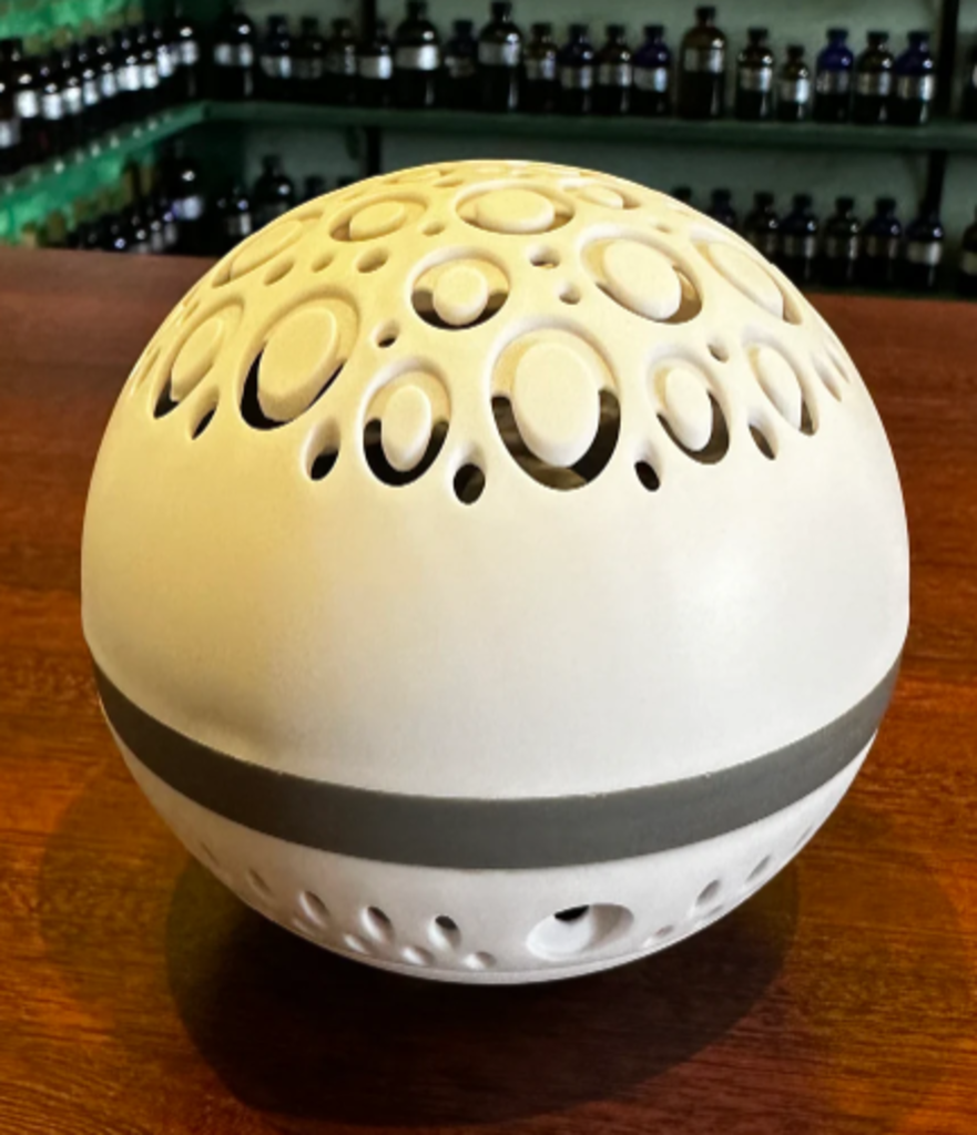 This adorable space ball is a USB powered diffuser. It is approximately 3.5 inches in diameter and will scent a small room easily.
