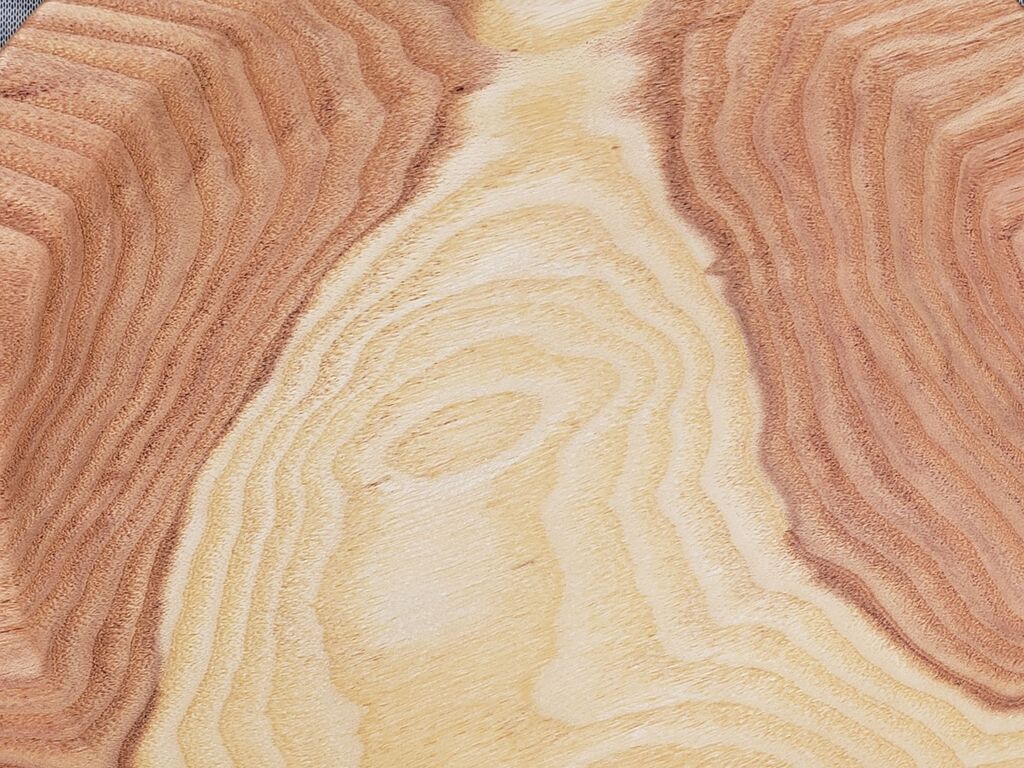 This Honey Locust wooden plate was crafted from an urban Colorado tree. Honey Locust is one of the strongest and densest woods available in Colorado, surpassed only by Black Locust. This strength ensures that the plate can withstand daily use and maintain its appearance for years to come. The striking band of white sapwood running down the center of the plate, contrasted by orange heartwood on either side, adds to its aesthetic appeal.