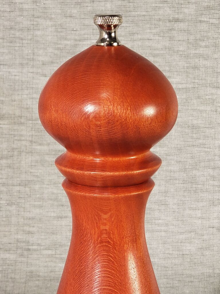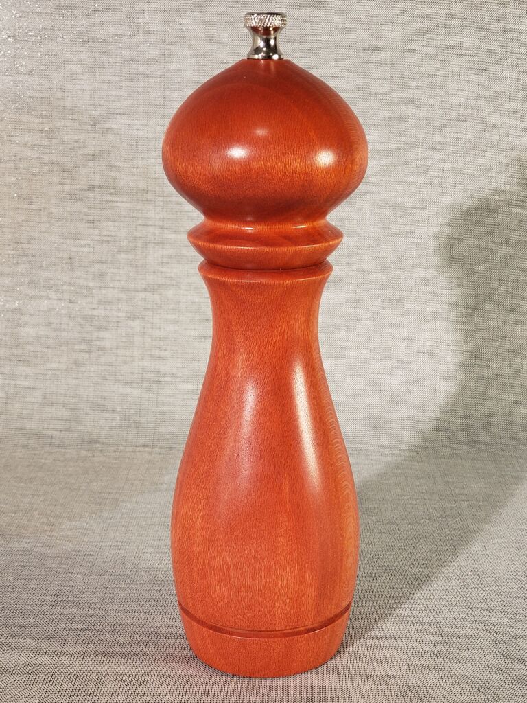 Beautiful wooden peppermill handmade from Sycamore. I've dyed the wood a nice deep Orange color to give it a little extra pop. The dye has been sealed with a coat of sanding sealer followed by multiple coats of Danish Oil.