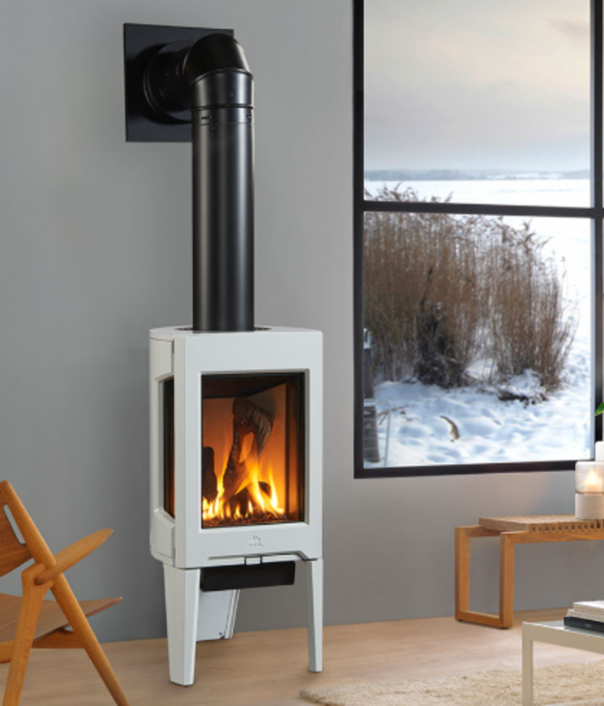 The Jotul GF 160 gas stove is a modern, direct-vent gas stove with a cast iron body and a three-sided glass design for a wide viewing angle. It can be used with a log set, along with other media like river rocks or glass, and is available with a blower fan and remote control. The stove is efficient, can operate without electricity, and has a maximum heating capacity of 1,000 square feet.