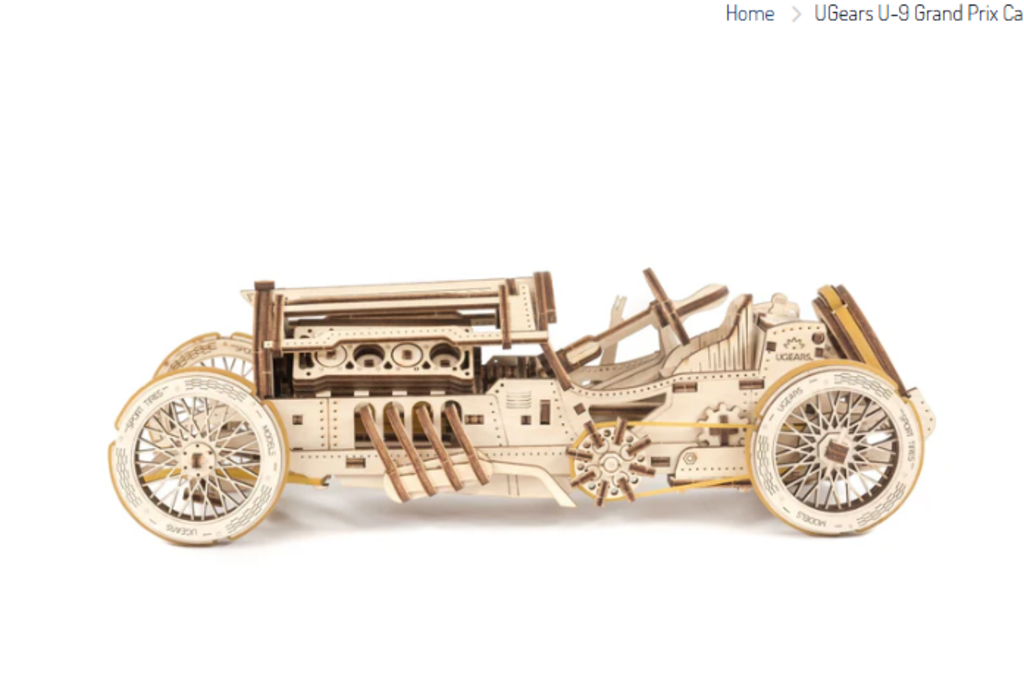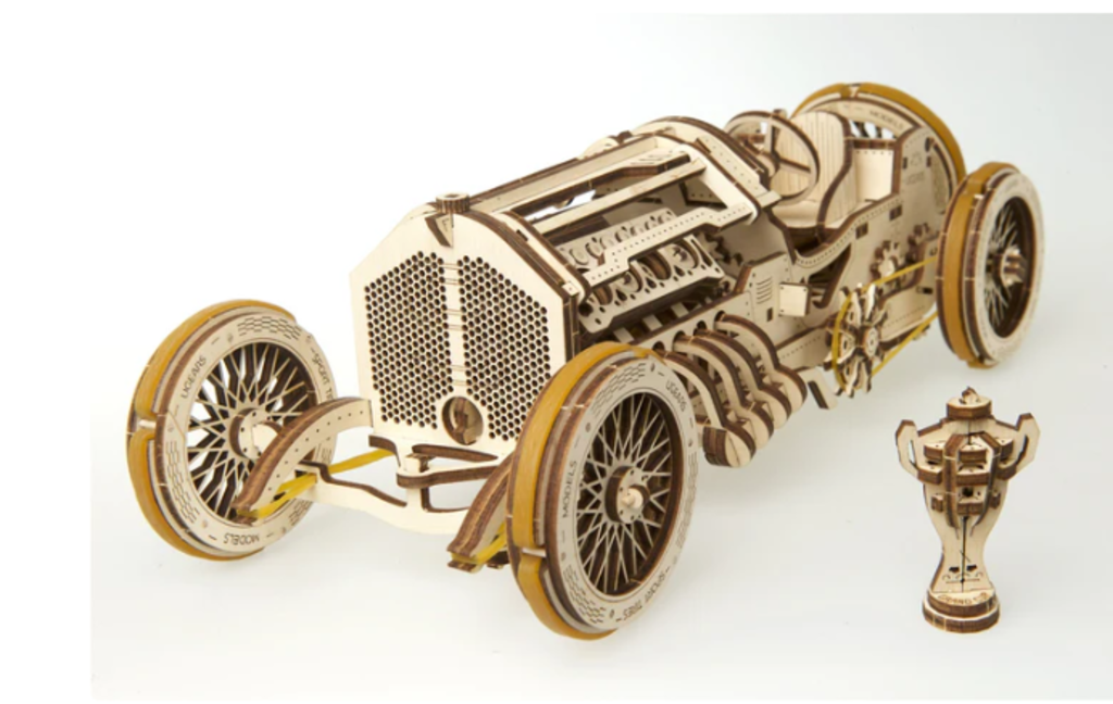UGears U-9 Grand Prix car, as the name implies, was built to simulate the all-action effect of the formula one Grand Prix. The model gives you the thrill that comes with speed, the sensation of power with the roar of super engines, and the fast-paced non-stop action of the Grand Prix circuit.