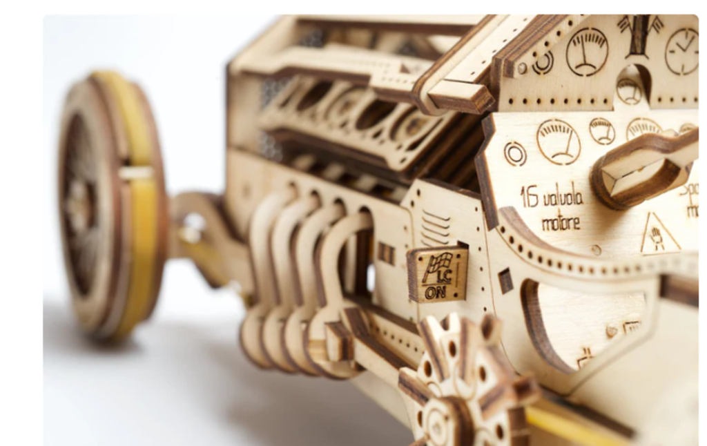 UGears' engineers and designers gave this new model an exquisite and truly elegant appearance by adopting the sleek flowing lines of famous racing cars.
