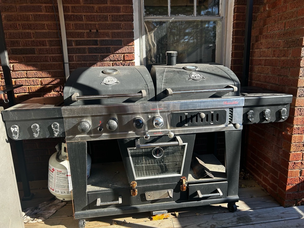 Well used grill, I’ve only used the charcoal side under a handful of times, mostly use the propane side. Never use the smoker side couldn’t tell you how it works. it definitely still has life in it, but I purchased a new one at the IMS holiday auction so we are letting this one go. Pickup only