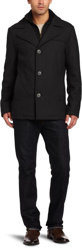 Keywords for SEO: Kenneth Cole men’s coat, Melton single-breasted coat, black pea coat, wool-blend men’s coat, winter outerwear, XX-Large coat, stylish men’s jacket