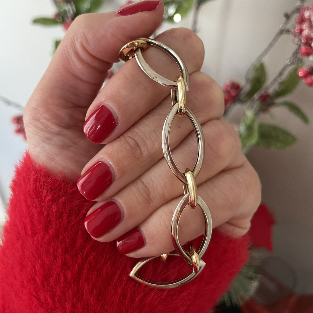 TSFJ Collection 14 Karat Yellow/White Gold 7.25 Inch Bracelet With An Extra Large Lobster Claw Clasp. #440-26423. 11.7 Grams.