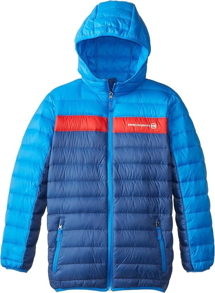 Keywords for SEO: Free Country boys jacket, packable boys jacket, hooded quilted jacket, kids blue jacket, lightweight boys outerwear