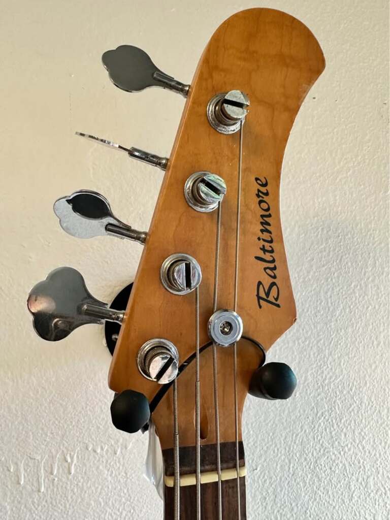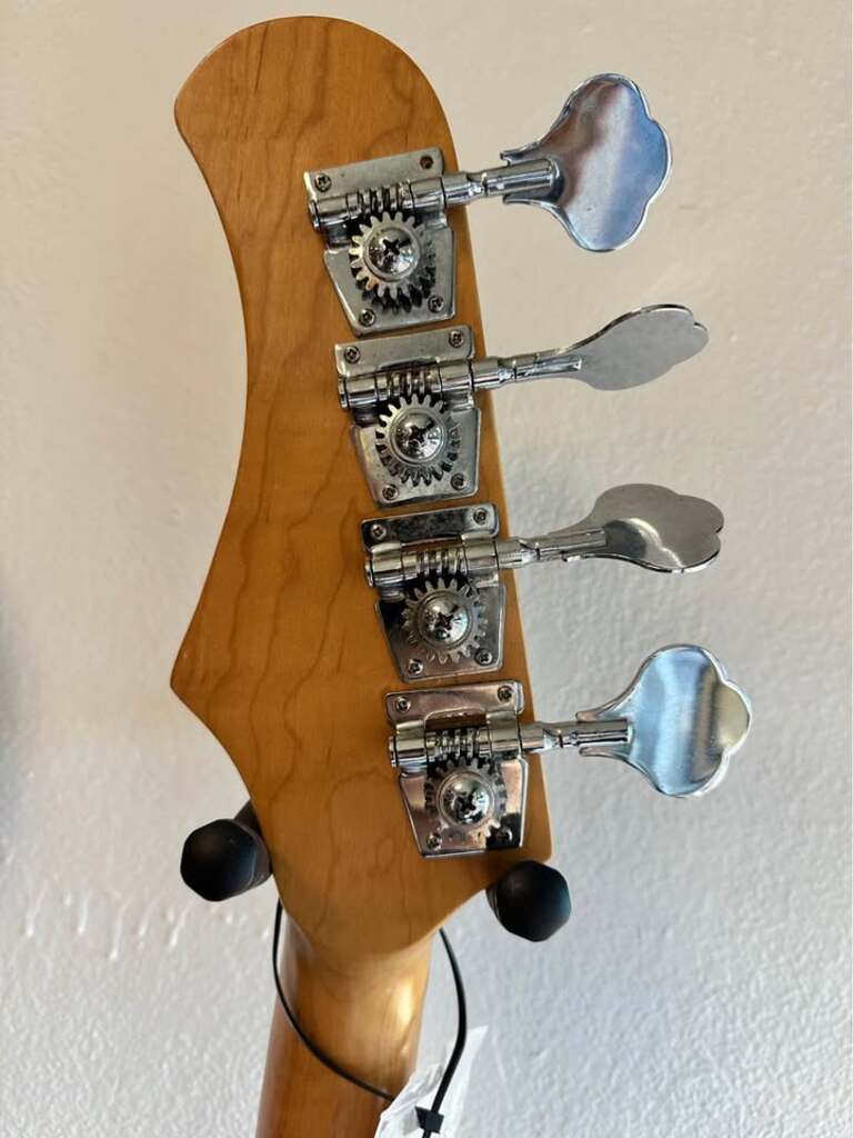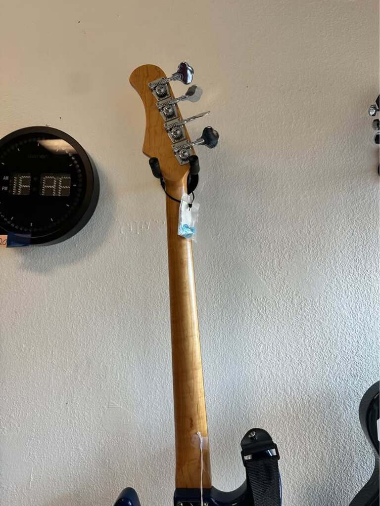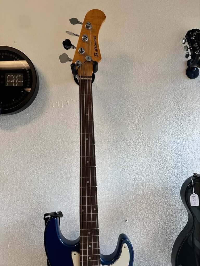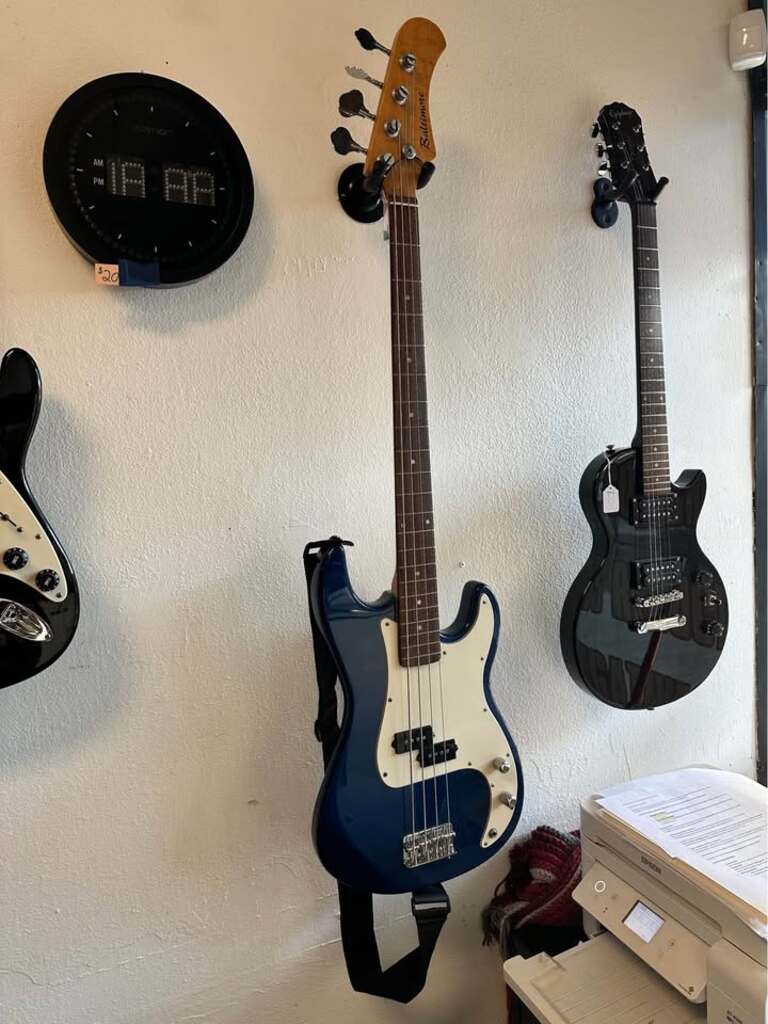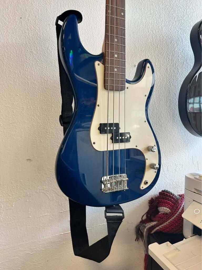 Features a dark blue finish with a white pick-guard. Equipped with a classic split-coil pickup, delivering warm, punchy tones with clarity.