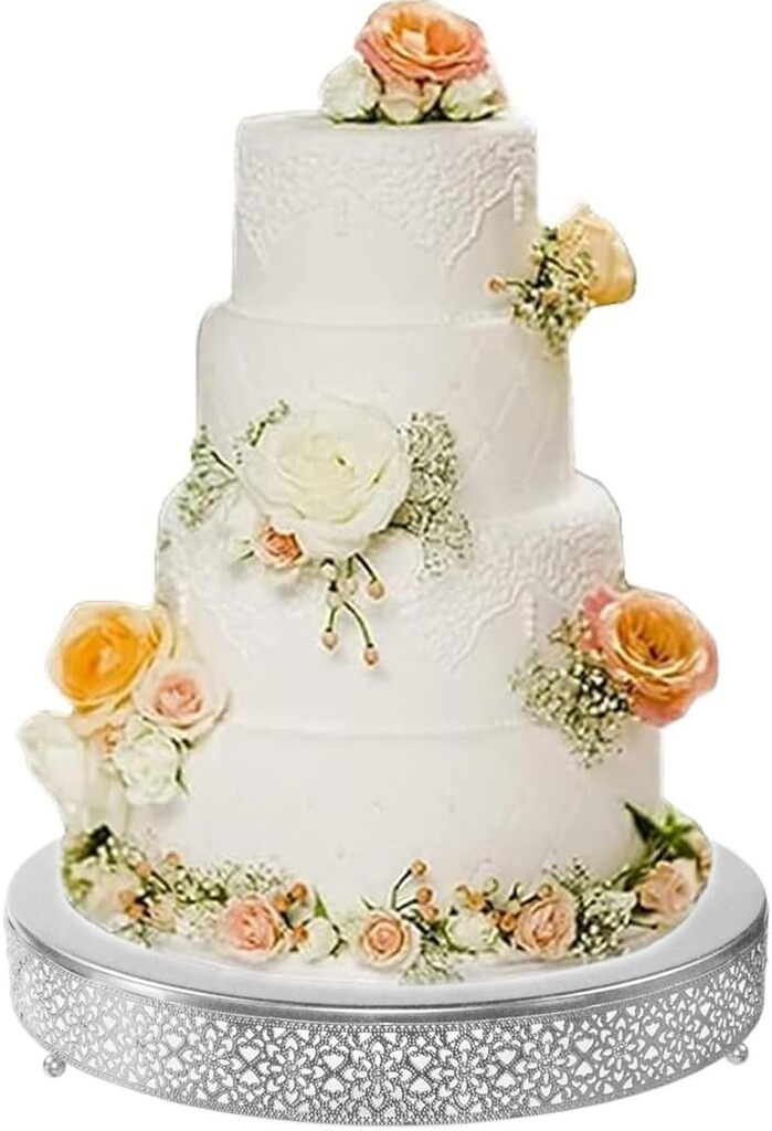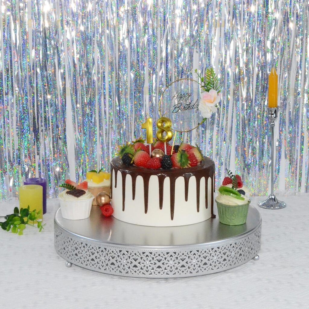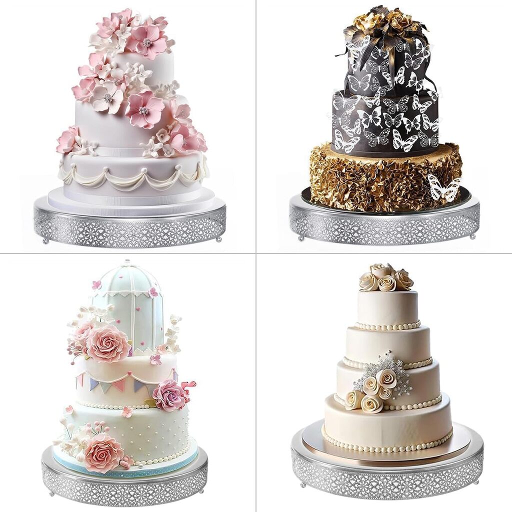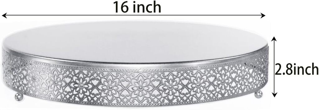 1 X 16 Inch Cake Stand Material: Metal Color: Matte Silver Measure: 16"LX 16"W X 2.8" H Weight:3.3 Pounds