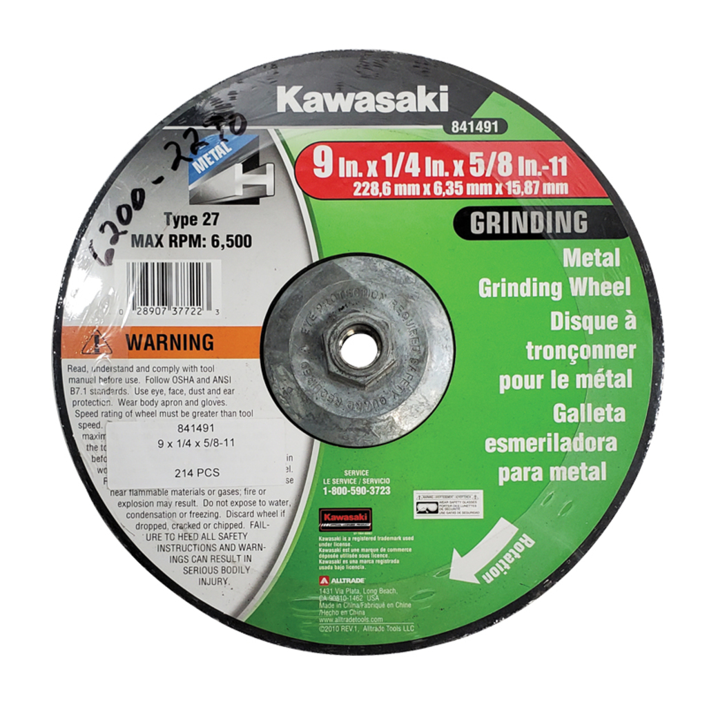 9" x 1 / 4" with 5 / 8-11 KAWASAKI Metal Grinding Wheel • 841491