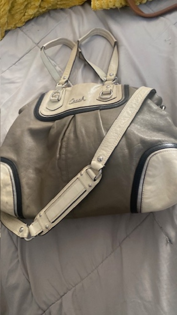 Cream and Gray Coach Bag