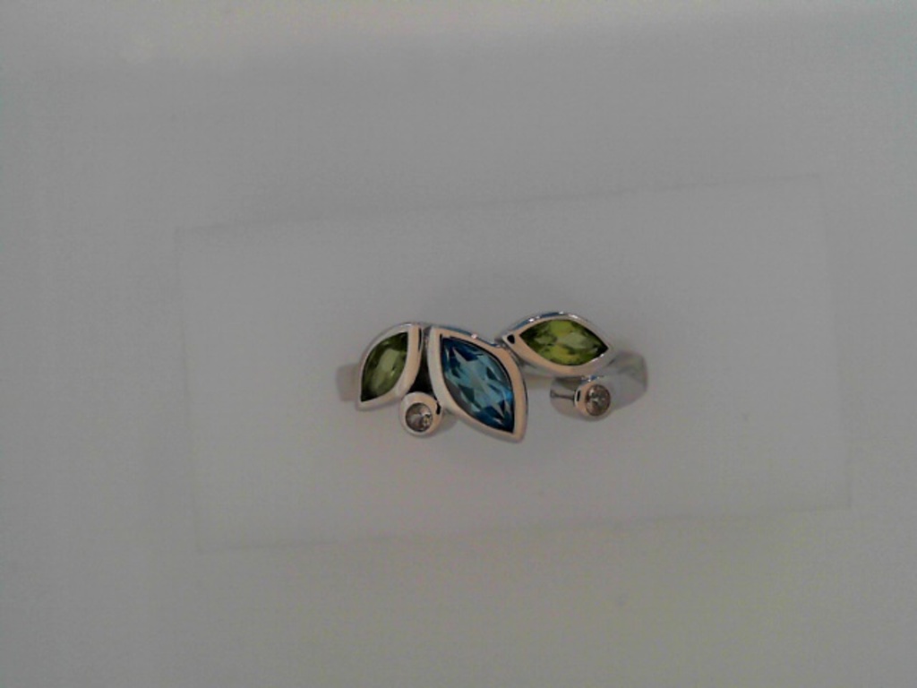 Sterling Silver Bezel Set Blue Topaz and Peridot Ring with White Topaz Accents SKU# 200-477
