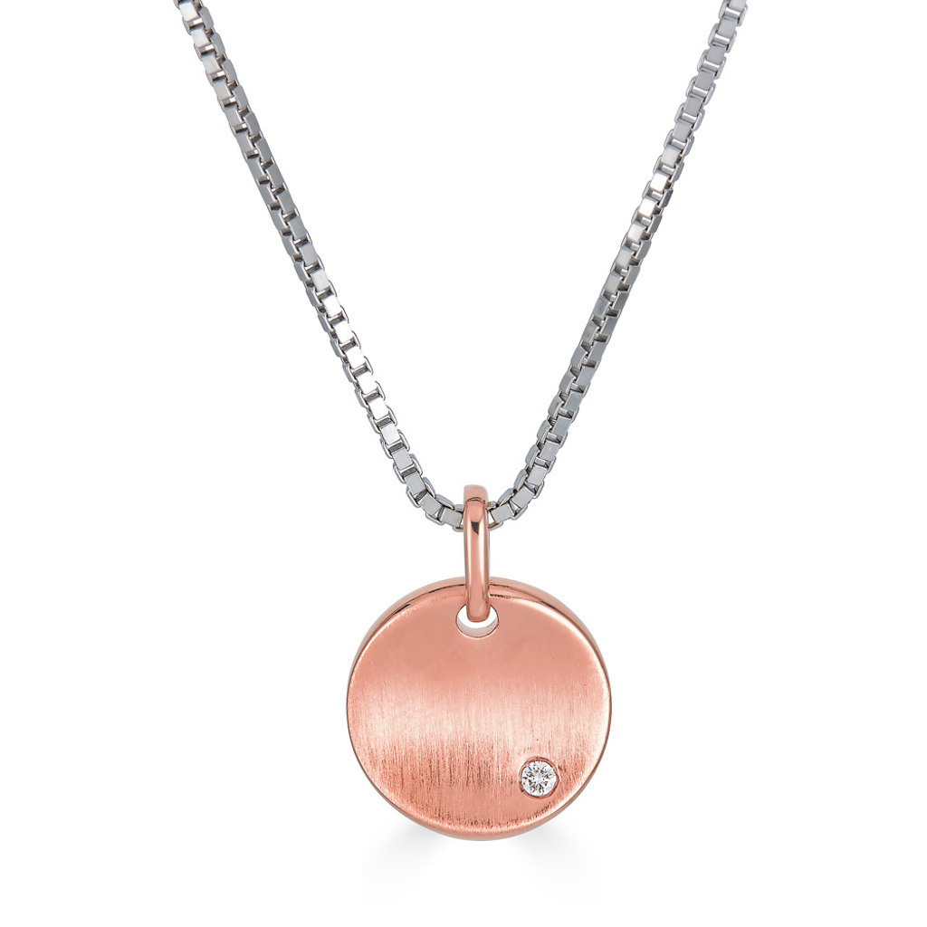 Sterling Silver and Rose Gold Plated Matte Finish Heart Pendant with Diamond Accent on an 18 Inch Box Chain with Lobster Claw Clasp SKU# 650-183