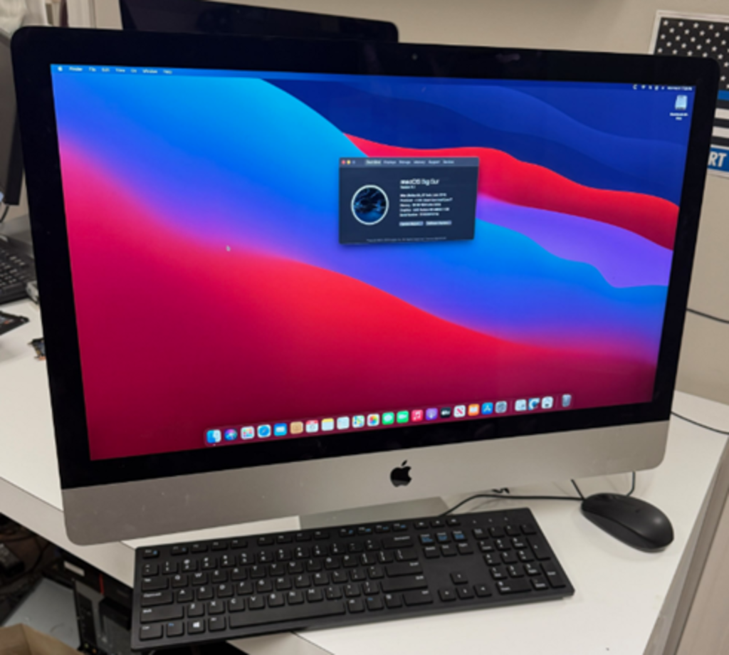 Please make sure this iMac will work for you. It’s running macOS Big Sur. Not sure how much further it will update. Comes with a black wired keyboard, black wired mouse, and power cord.
