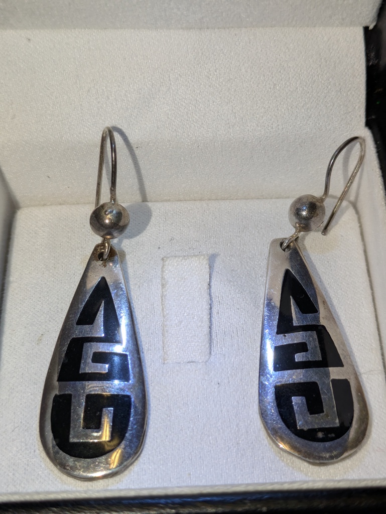 Sterling silver pendant earrings made in Mexico, geometric pattern