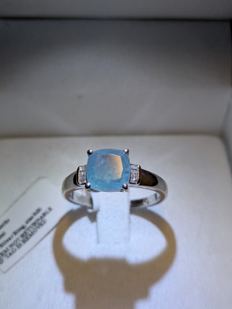 Beautiful blue-green Djoy Grandidierite gemstone and diamond , Sterling Silver ring . Size 9 Brand new with tag.