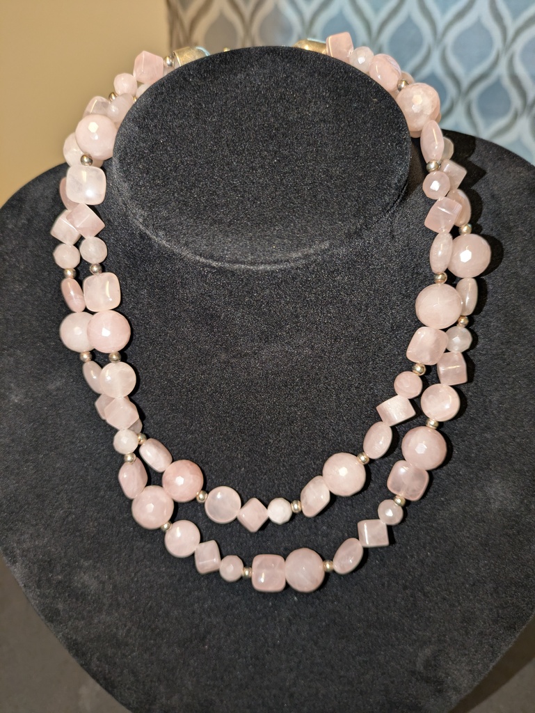 20" Quartz beaded necklace, light pink stones and silver beads w/ sterling silver clasp