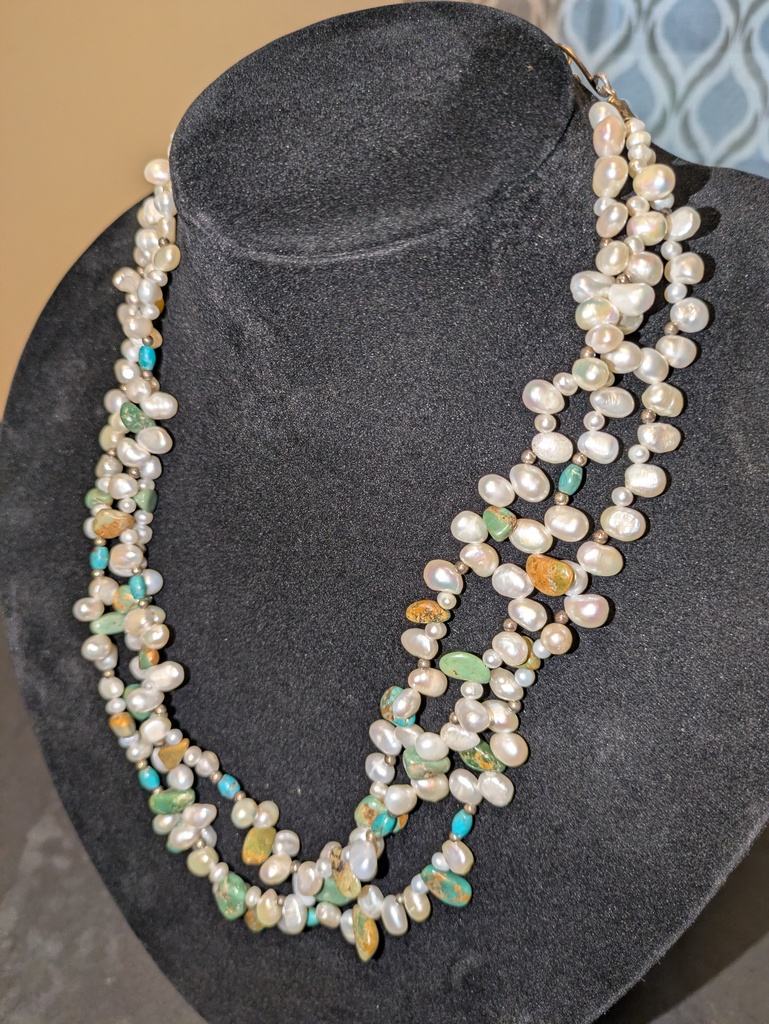 22" Triple strand Freshwater Pearl and Turquoise necklace