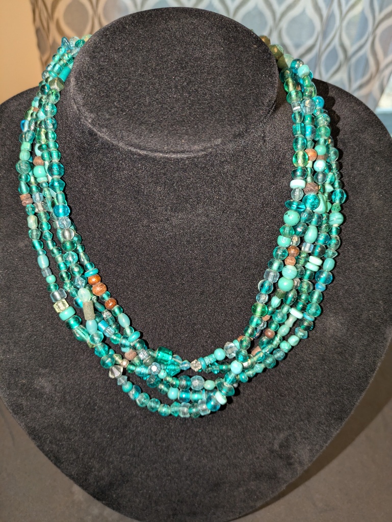 20" Emerald green stones, glass and wooden beaded necklace
