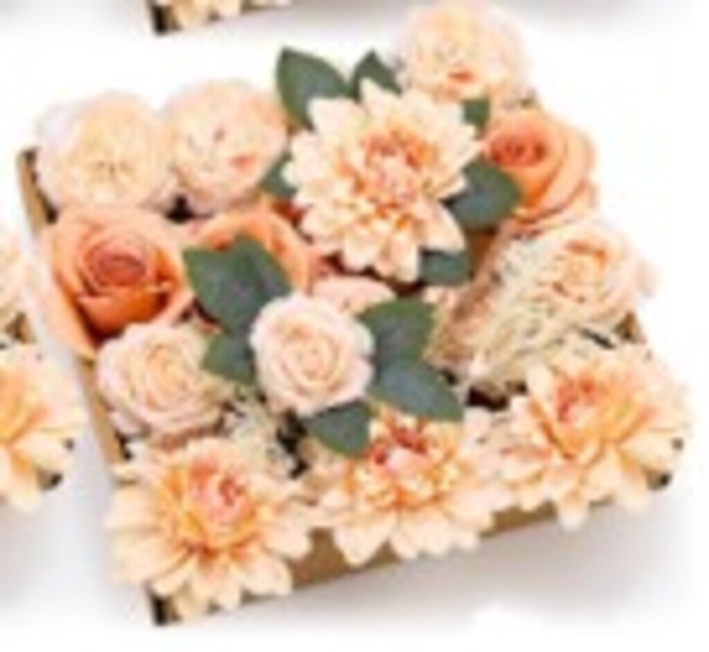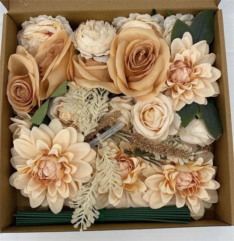 TIGEEN Faux Flowers Boxed Set, Champagne/Peach colors, Assorted Flower Styles in Box.