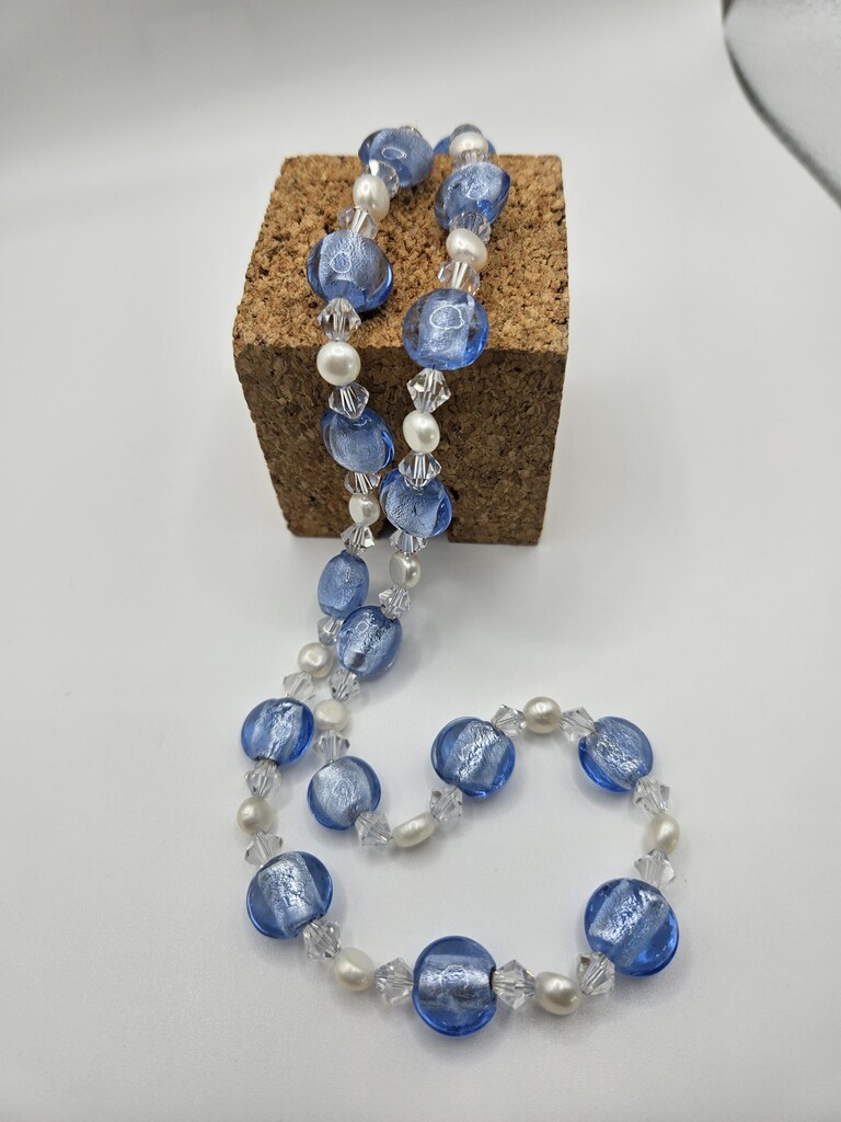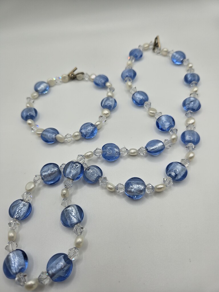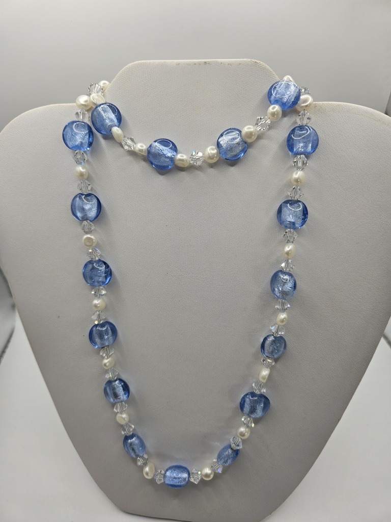 Sterling Silver 20"-22" Vintage 1920's Glass Bead, White Pearl and Swavorski Crystal Set.