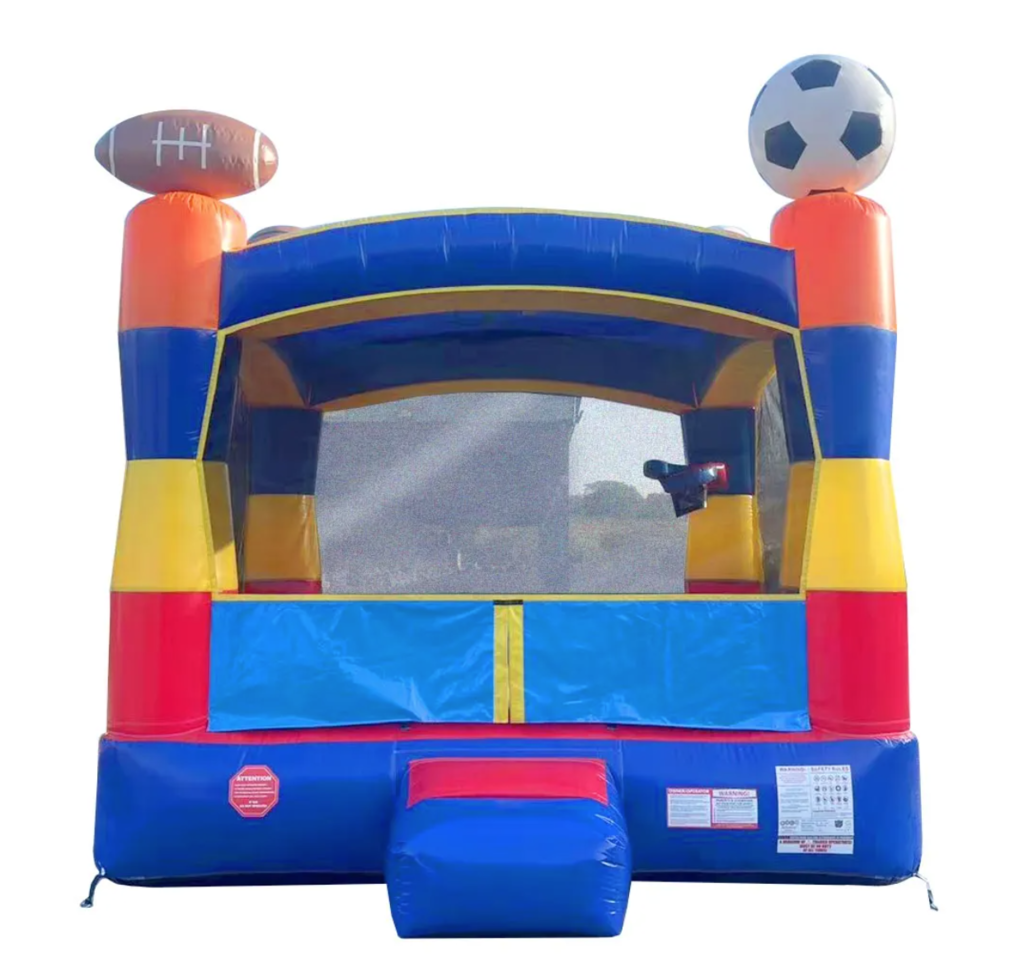 This bouncer is a wonderful choice for your kids, bright and vibrant rainbow colors with adorable sports-themed pillars that kids will love.. Kids step into the spacious bouncing area and delight themselves by playing and jumping around for hours. It even comes with a built-in basketball hoop right inside the bouncing area. With its colorful block theme and a spacious bouncing area, this inflatable has everything you need for a whole lot of fun and entertainment right in your backyard!