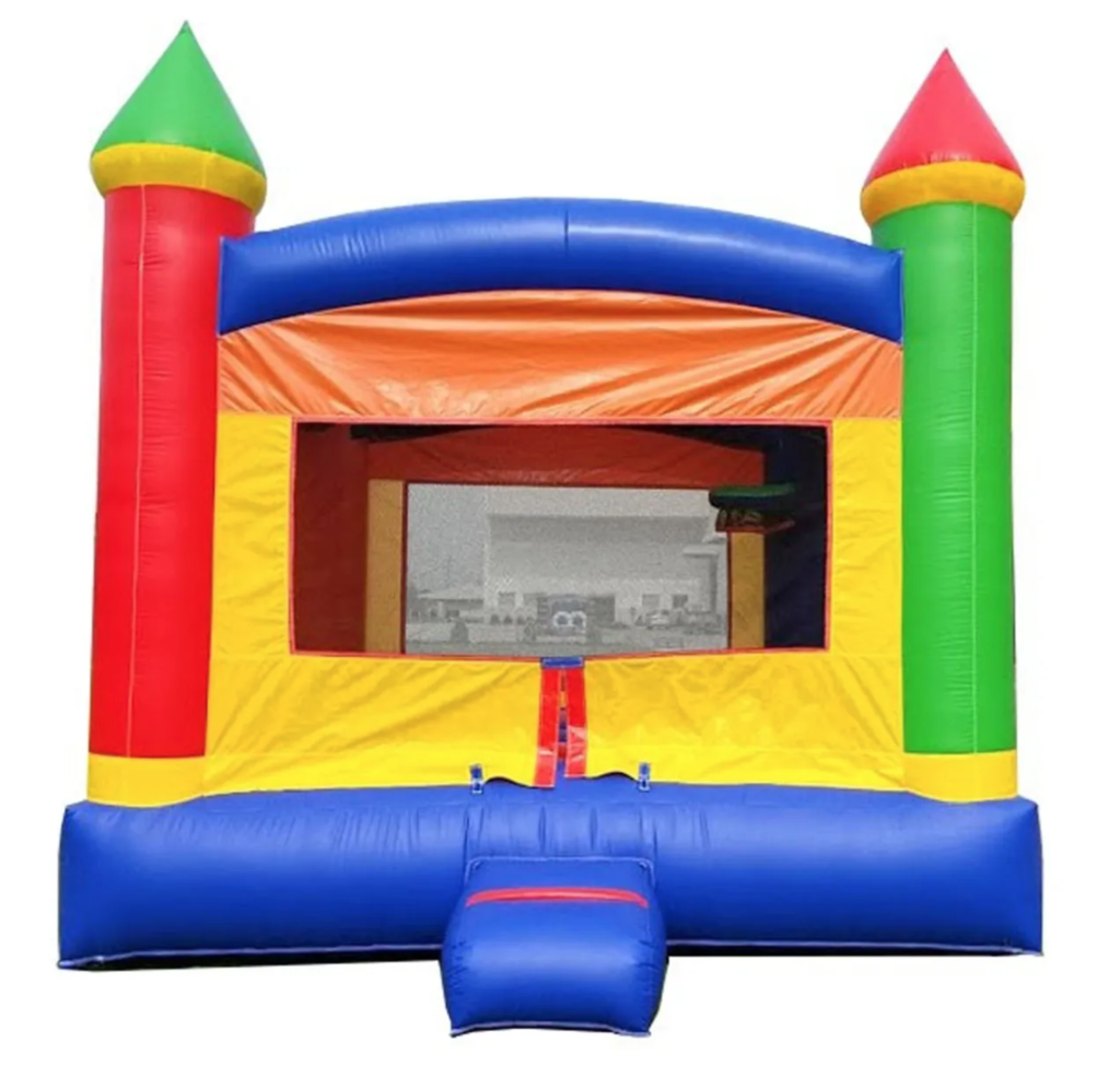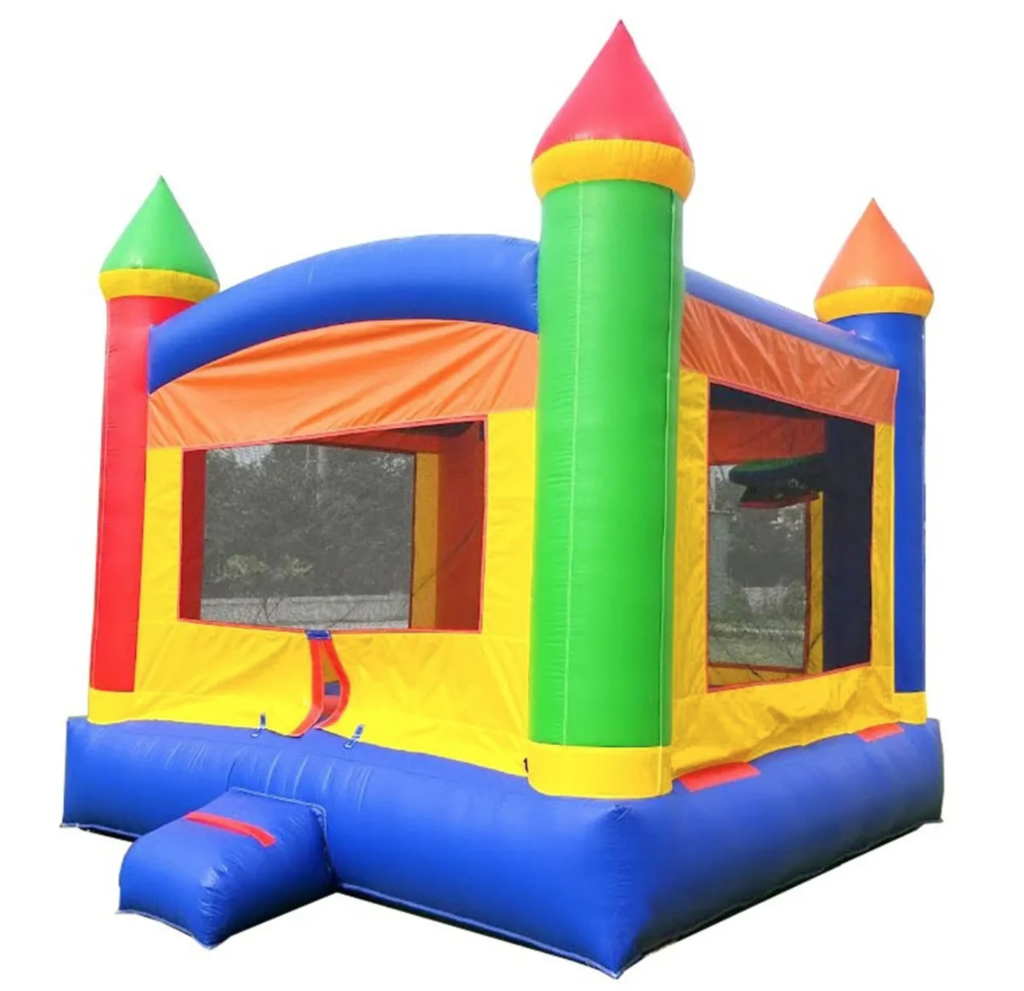 All high-stress areas. bouncing surface, mattress sides, bottom, and slide surface are industrial strength, 15-ounce (0.45mm) PVC.
