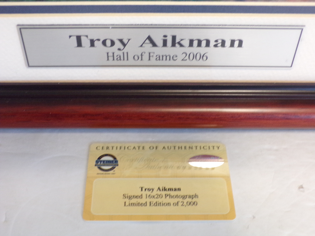 Signed by Troy Aikman. 100% authentic. Comes with a Certificate of Authenticity and a lifetime money-back guarantee. A glass pane framed poster measuring 20" by 16". Please see the photographs provided to review your item in detail. Packed with care.