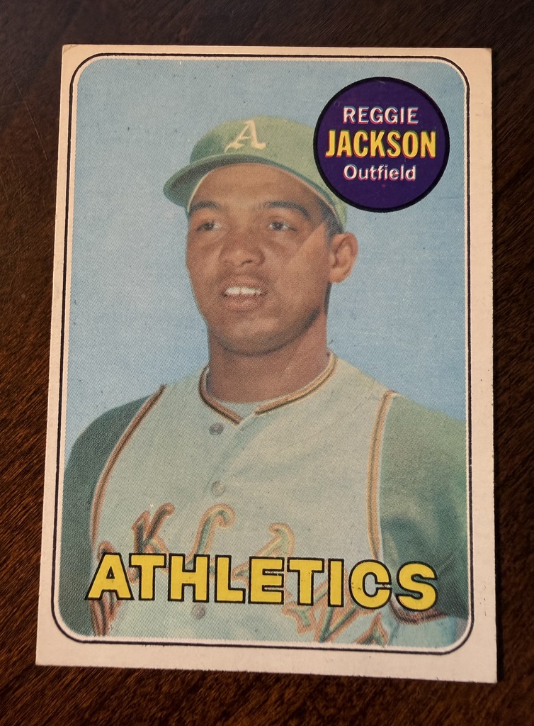 This is a 1969 Topps Reggie Jackson Rookie Card #260 This card features the rookie year of the legendary Mr. October.